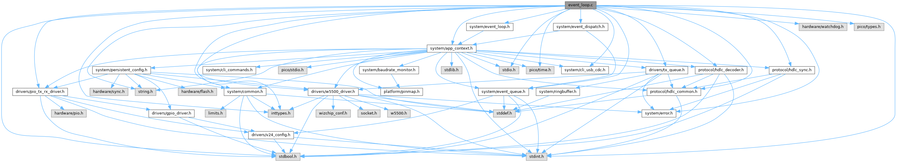 #include "system/event_loop.h"#include <inttypes.h>#include <stdbool.h>#include <stdint.h>#include <stdio.h>#include <string.h>#include "hardware/watchdog.h"#include "pico/time.h"#include "pico/types.h"#include "drivers/pio_tx_rx_driver.h"#include "drivers/tx_queue.h"#include "drivers/w5500_driver.h"#include "protocol/hdlc_common.h"#include "protocol/hdlc_decoder.h"#include "protocol/hdlc_sync.h"#include "system/app_context.h"#include "system/cli_usb_cdc.h"#include "system/common.h"#include "system/error.h"#include "system/event_dispatch.h"#include "system/event_queue.h"